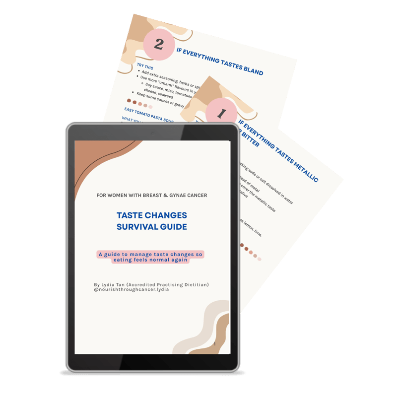 This is a practical guide for women going through chemotherapy who are struggling with metallic, bitter, bland, or strange-tasting food.